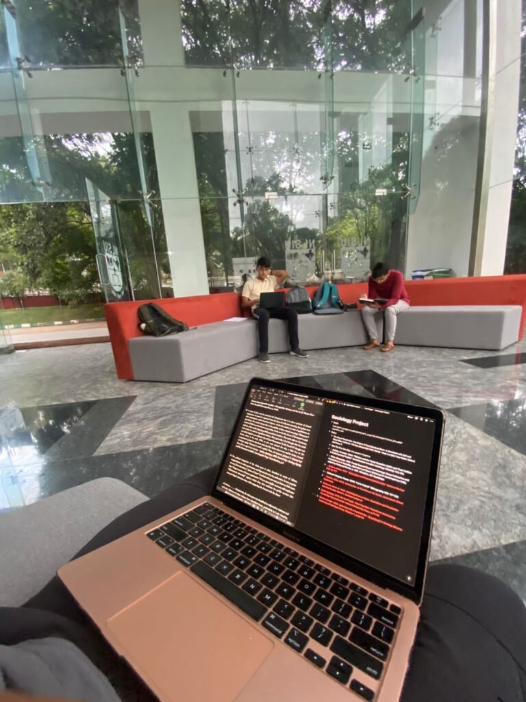 My day begins at 7 AM with getting ready and breakfast before classes start at 9. This trimester, I have classes till 4 PM on three days and till 1 PM on two. After classes, I usually take a short nap, grab snacks at the mess, and catch up with friends. By 5:30, I head to the library and finish my readings by 7:30. After dinner, I take a short walk around campus and return to the library by 8:30 to work on assignments until it closes at 12.